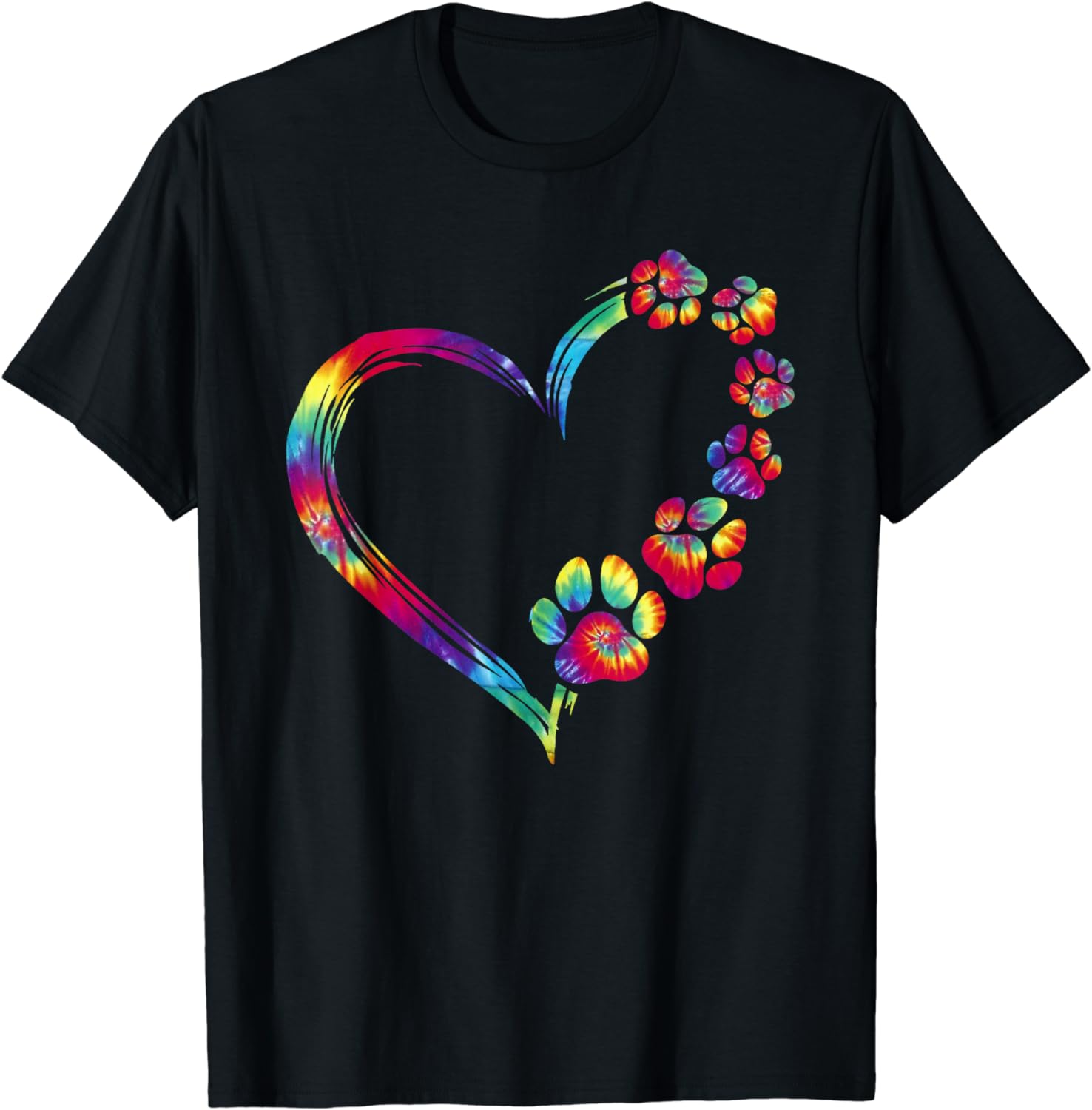 Dog Mom Dad Puppy Love Dogs Paw Print Heart Tie Dye Funny T-Shirt