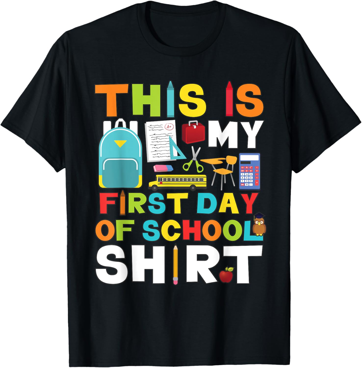 This is my first day of school shirt. First day of school shirt with this a cute colorful shirt. Back to school shirt for principal, bus driver, mom, dad, lunch lady & elementary school teacher. Awesome first day of school shirt! Perfect for students, toddlers, boys, girls, kids & youth to wear on the first day of preschool, pre-k, kindergarten, elementary or middle school. Surprise your classroom, principal or teacher with this funny first day of school shirt.