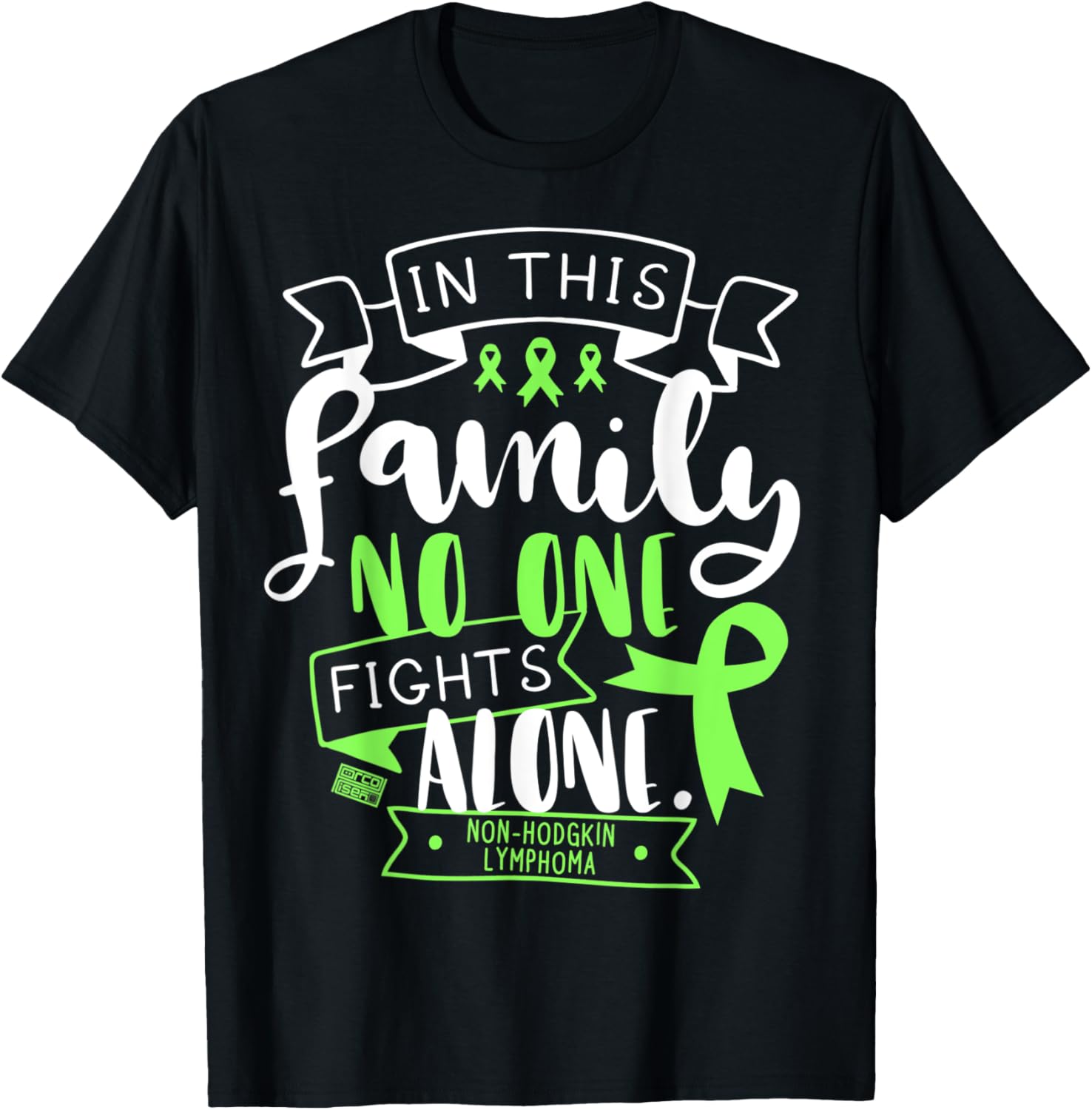 Includes LIME GREEN ribbon, cancer disease NON-HODGKIN LYMPHOMA, and brave supportive fighting quote IN THIS FAMILY, NO ONE FIGHTS ALONE. Celebrate WORLD LYMPHOMA AWARENESS MONTH on SEPTEMBER! Be a fighter, survivor, and warrior! Protect lymphatic system! Makes a great gift idea for strong fighters or warriors who were diagnosed with nearly incurable diseases, inspiring medical doctors or nurses who strongly support all cancer awareness or hopeful parents and survivors who hope, fight, and raise awareness!