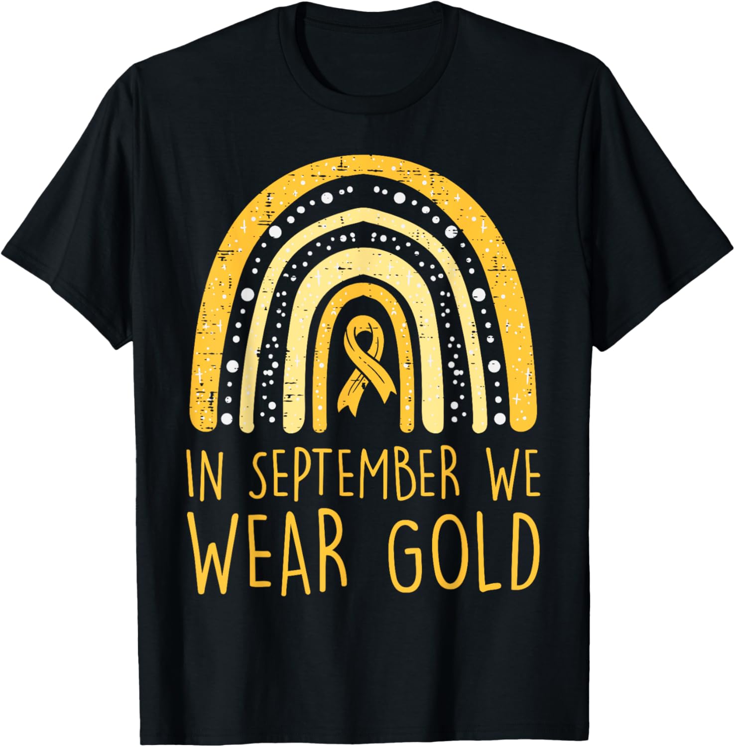 Rainbow In September We Wear Gold Childhood Cancer Awareness T-Shirt