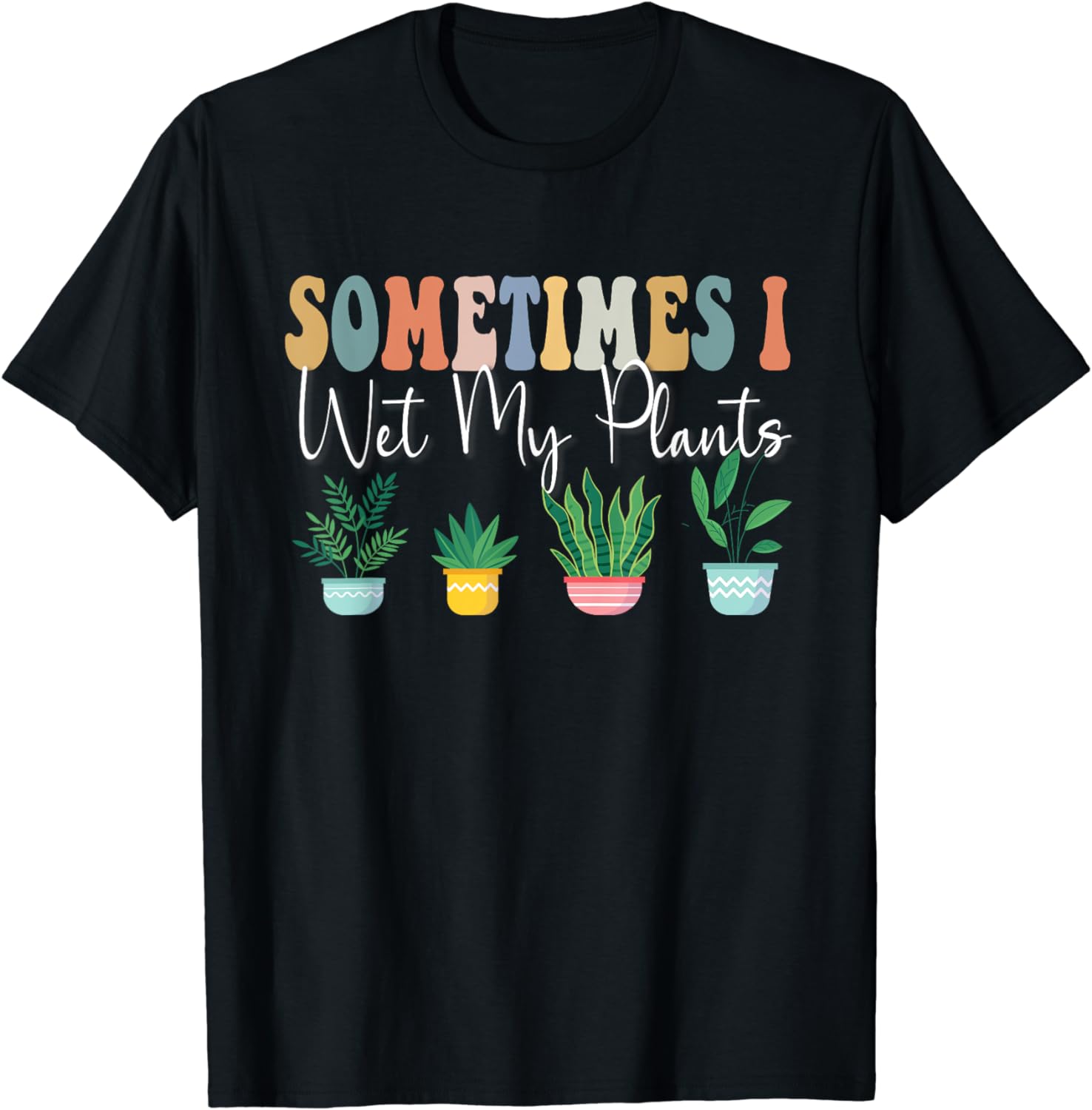 Sometimes I Wet My Plants Funny Groovy Gardener Gardening T-Shirt