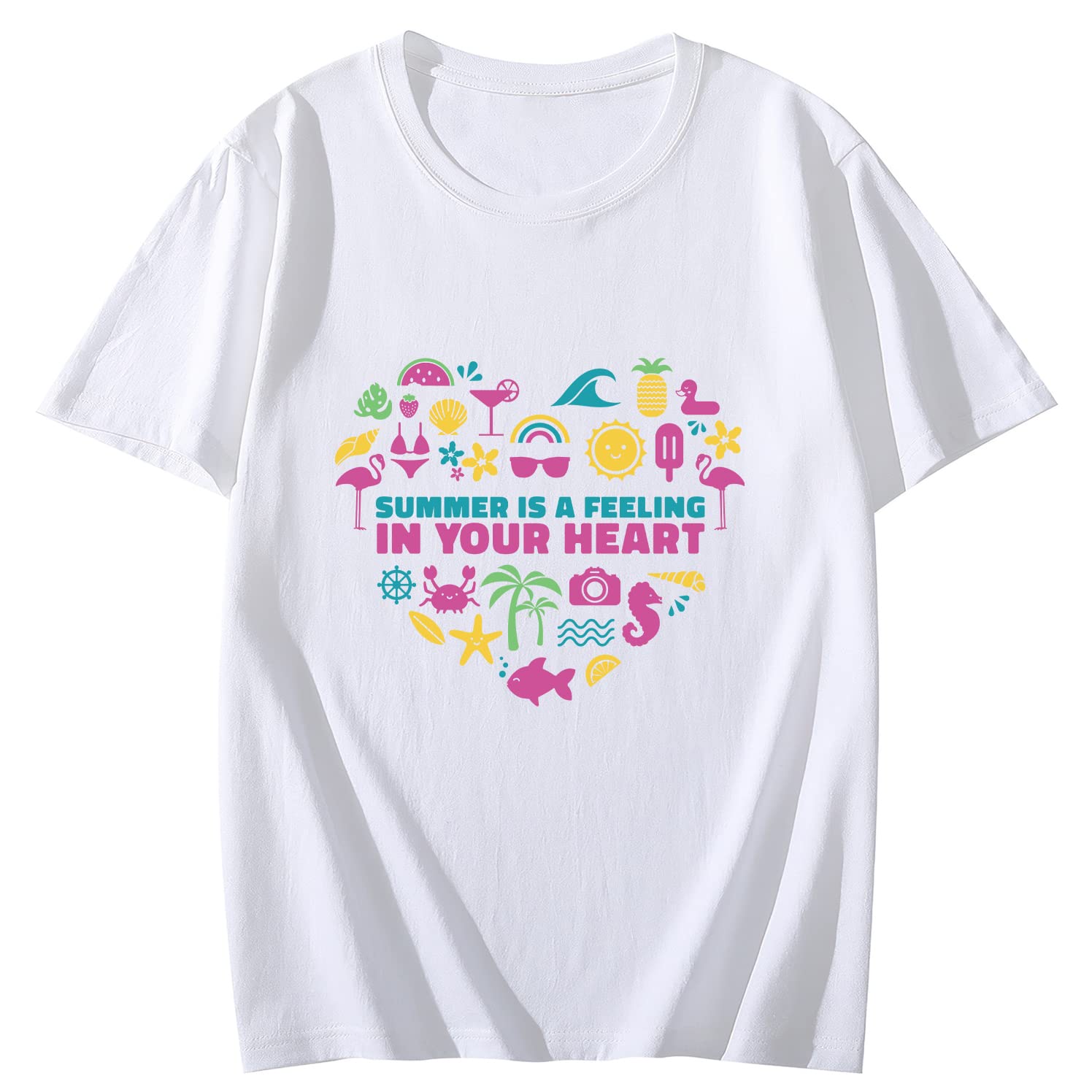 Summer Elemental Heart Short Sleeve Comfort Tops T-Shirts for Women