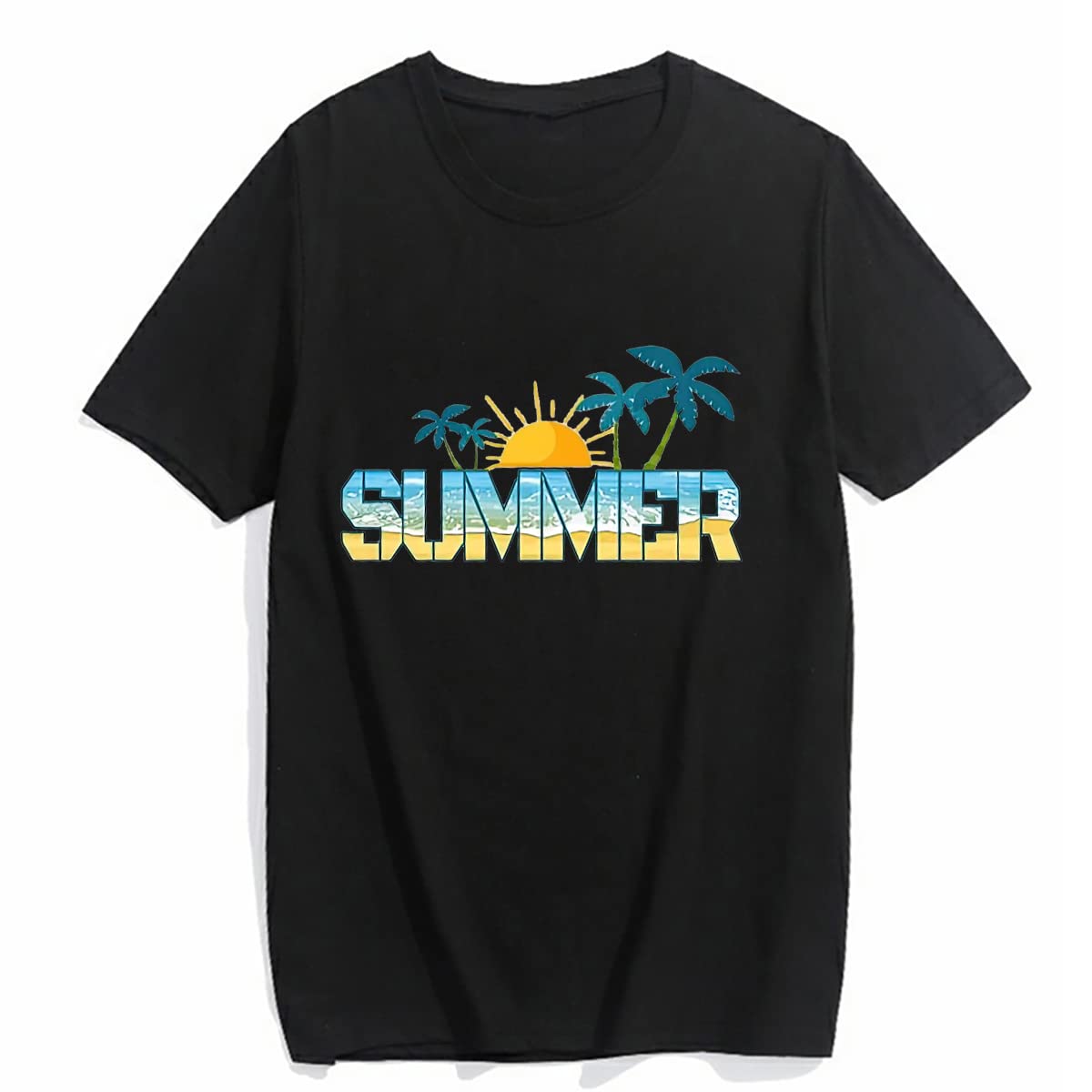 T-Shirt for Women Hello Summer Graphic Shirt Vacation Beach Style Casual Short-Sleeved Tops